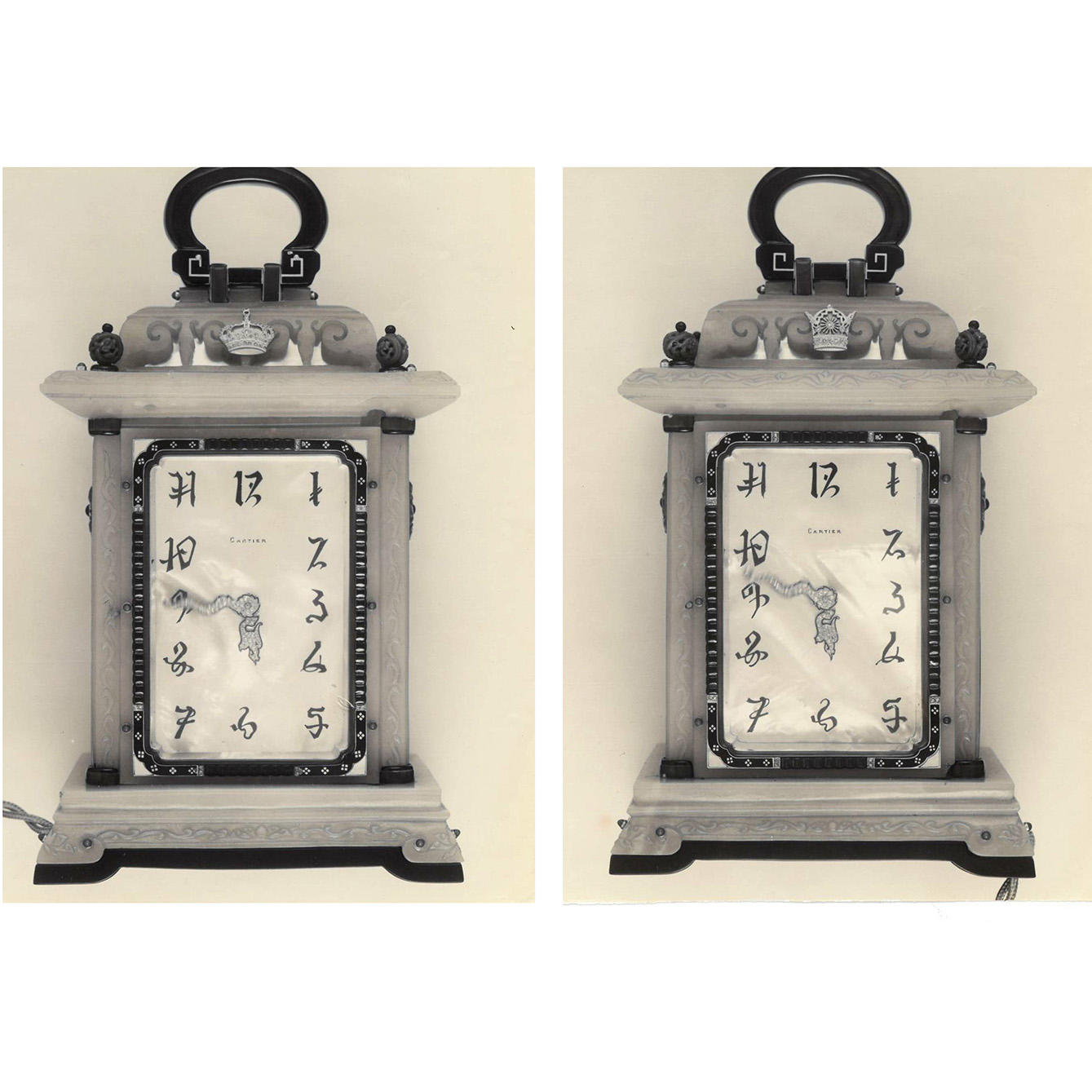 Yang lebih menarik lagi adalah dua foto hitam putih yang menunjukkan bahwa jam itu awalnya memiliki mahkota di setiap sisi – Mahkota Kerajaan Mesir yang masih ada dan Mahkota Pahlavi Iran, sekarang hilang. Faktur tertanggal 15 Maret 1939 (hari pernikahan) selanjutnya mengonfirmasi bahwa jam ini dibuat sebagai hadiah pernikahan pesanan khusus untuk Putri Fawzia.