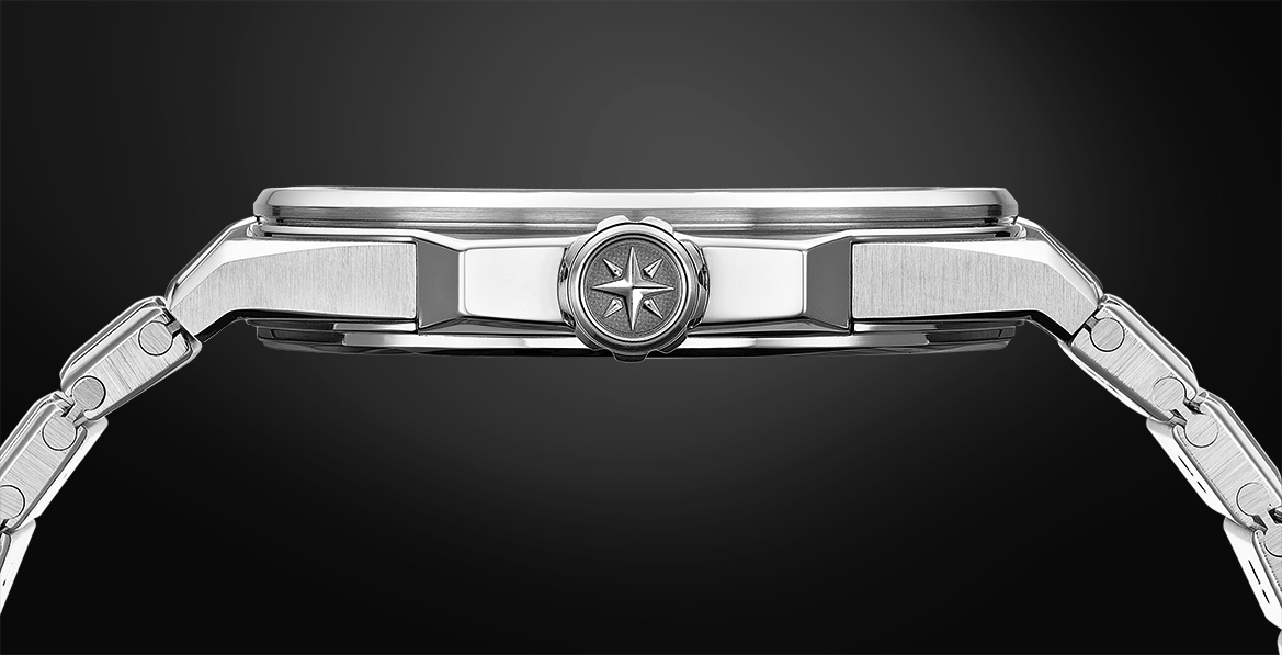 Kasingnya dibedakan dengan bumper yang melindungi tombol jam yang diukir dengan kompas yang disebut mawar pedoman (compass rose), instrumen yang telah membantu para petualang menemukan jalan mereka.