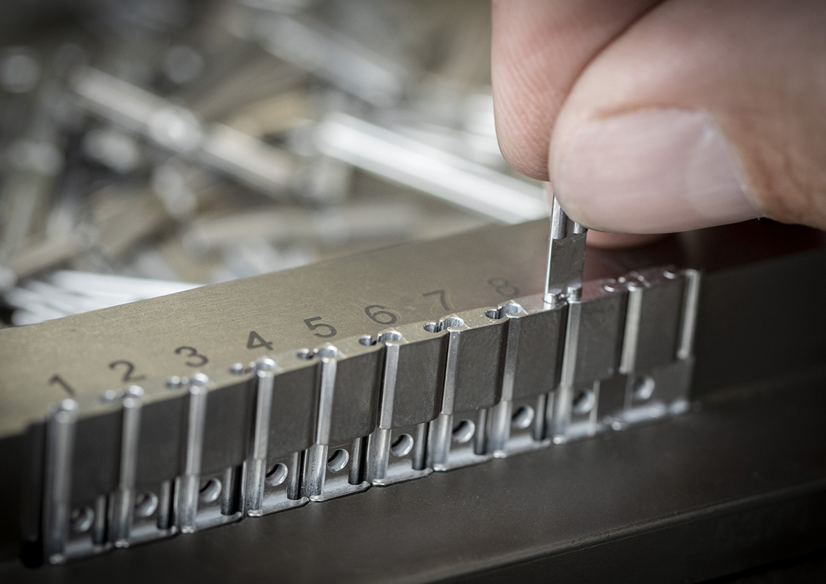 Tali jam yang meruncing lembut terdiri dari tautan tunggal batang logam (ingot), diatapi oleh tutup tengah yang ditinggikan.