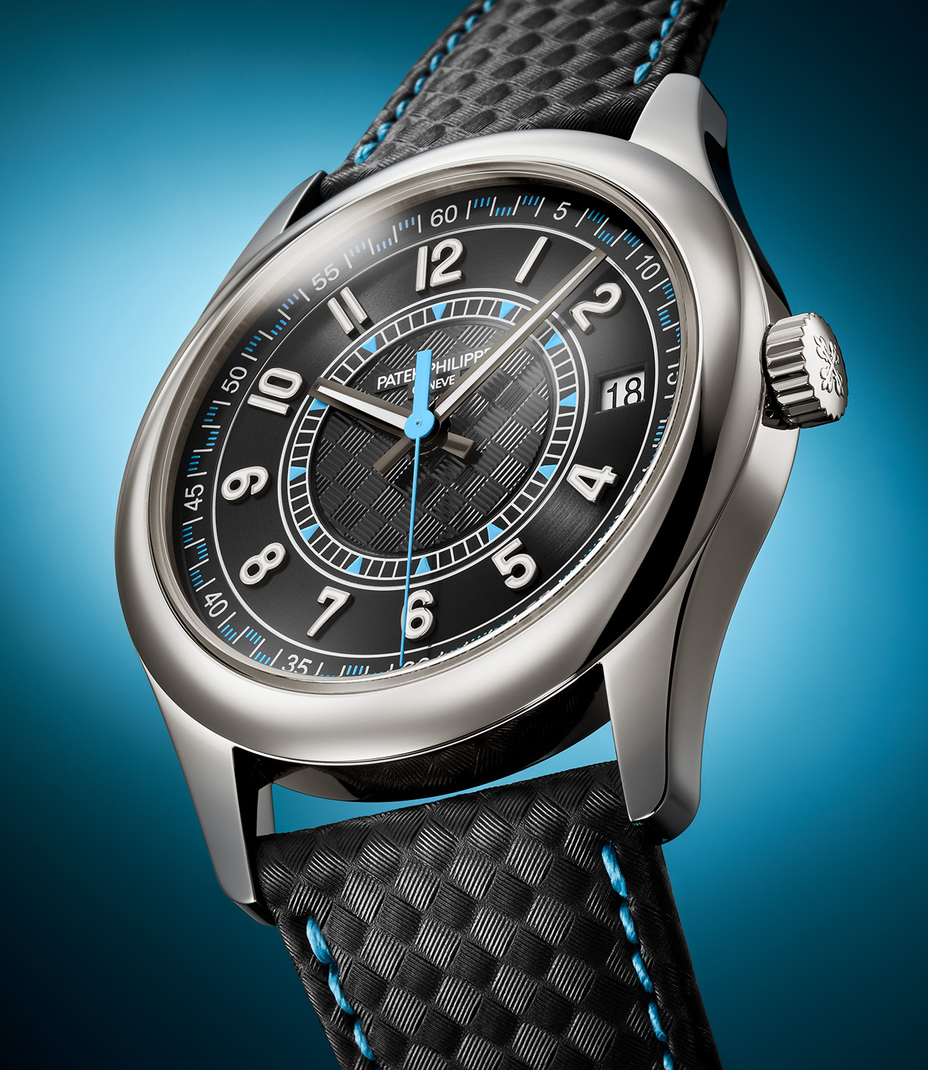 Koleksi Calatrava terus berkembang dengan hadirnya tiga referensi baru (Ref. 6007G-001, 6007G-010 & 6007G-011), yang dihiasi dengan detail warna primer. Tiga pilihan jam terbaru ini tampil sporty dengan case dari emas putih, dial jam hitam eboni, dan sentuhan warna kuning (6007G-001), merah (6007G-010) atau biru langit (6007G-011) pada counter dan jarum detik, indeks jam, serta pada jahitan dan lapisan tali kulit jam warna hitam dengan pola “karbon” yang timbul.