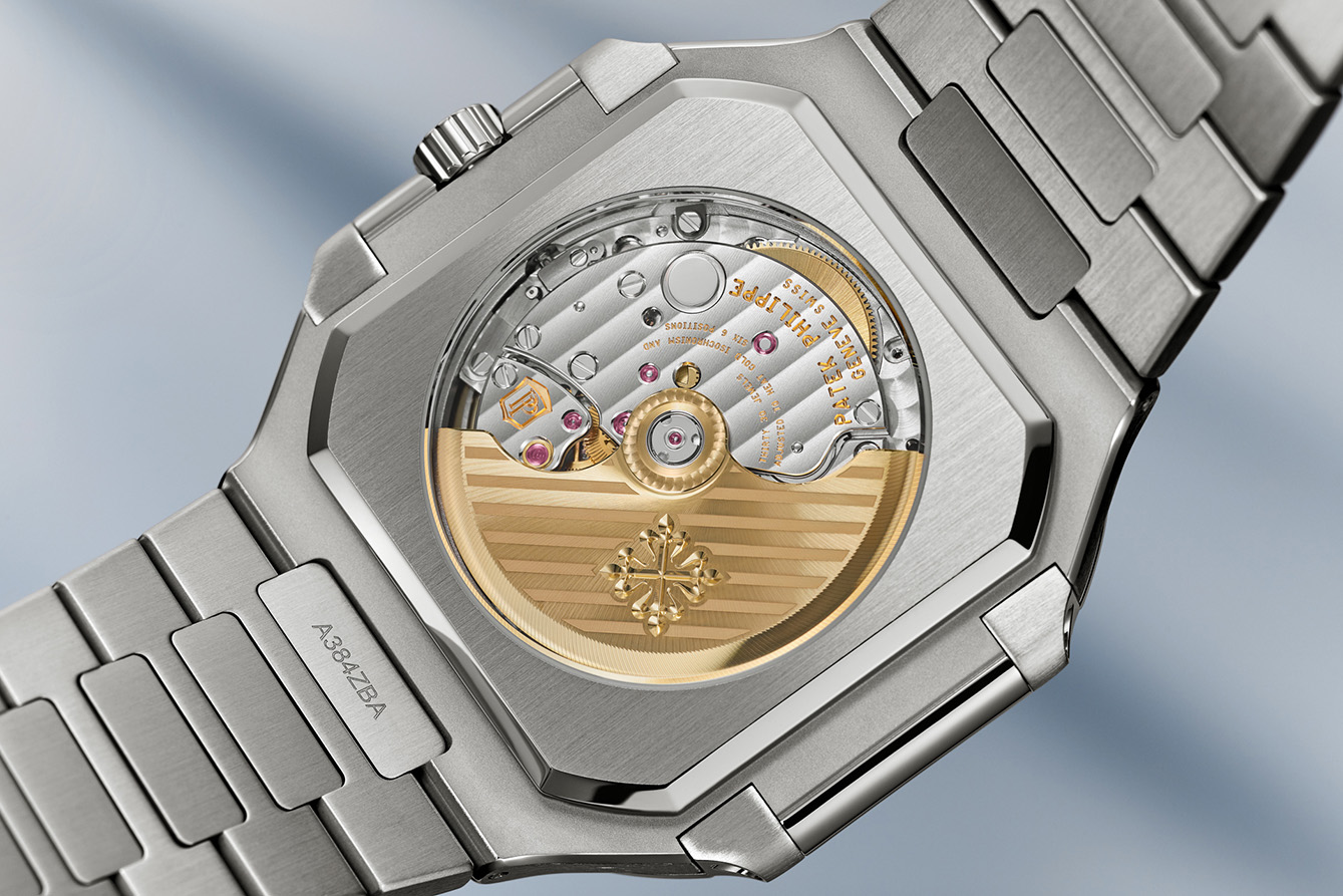 Detail lain yang menarik adalah sematan perdana dari batu berlian dengan potongan baguette di bawah posisi jam 6, yang biasanya berpotongan bulat, dan menjadi ciri khas dari setiap jam tangan dengan case berbahan platinum dari Patek Philippe.