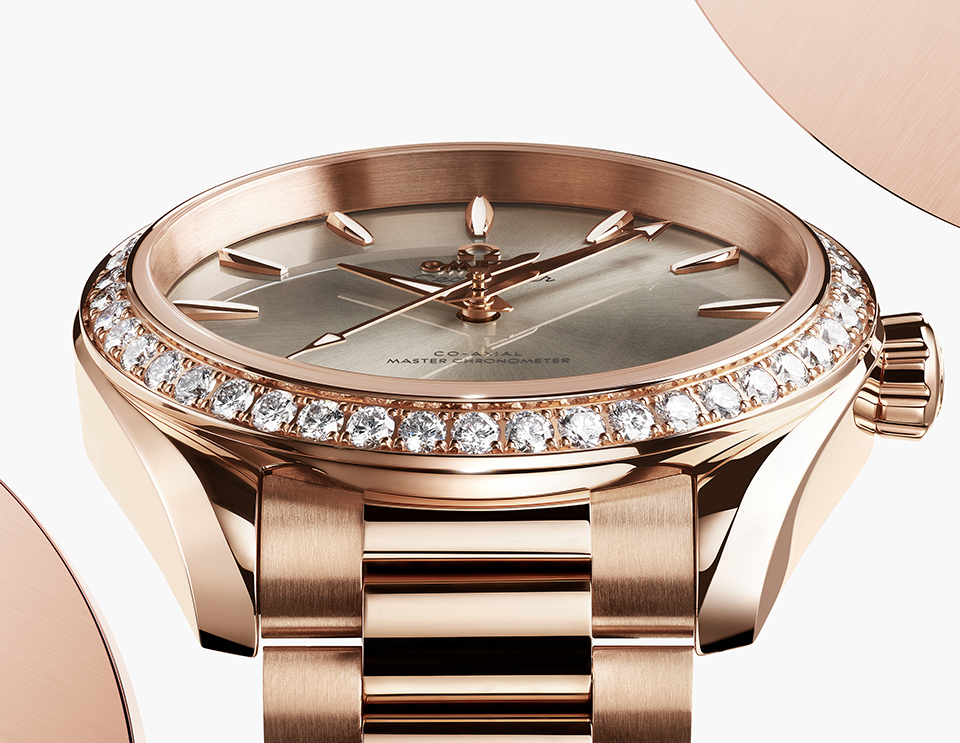Selain itu, Omega juga merilis dua model baru yang menghadirkan kemewahan, yaitu versi dengan 46 berlian dan case berdiamater 38mm terbuat dari logam khusus Omega 18K Sedna™ Gold, paduan emas merah solid yang dikenal dengan nuansa hangat dan daya tahan tinggi terhadap pemudaran.
