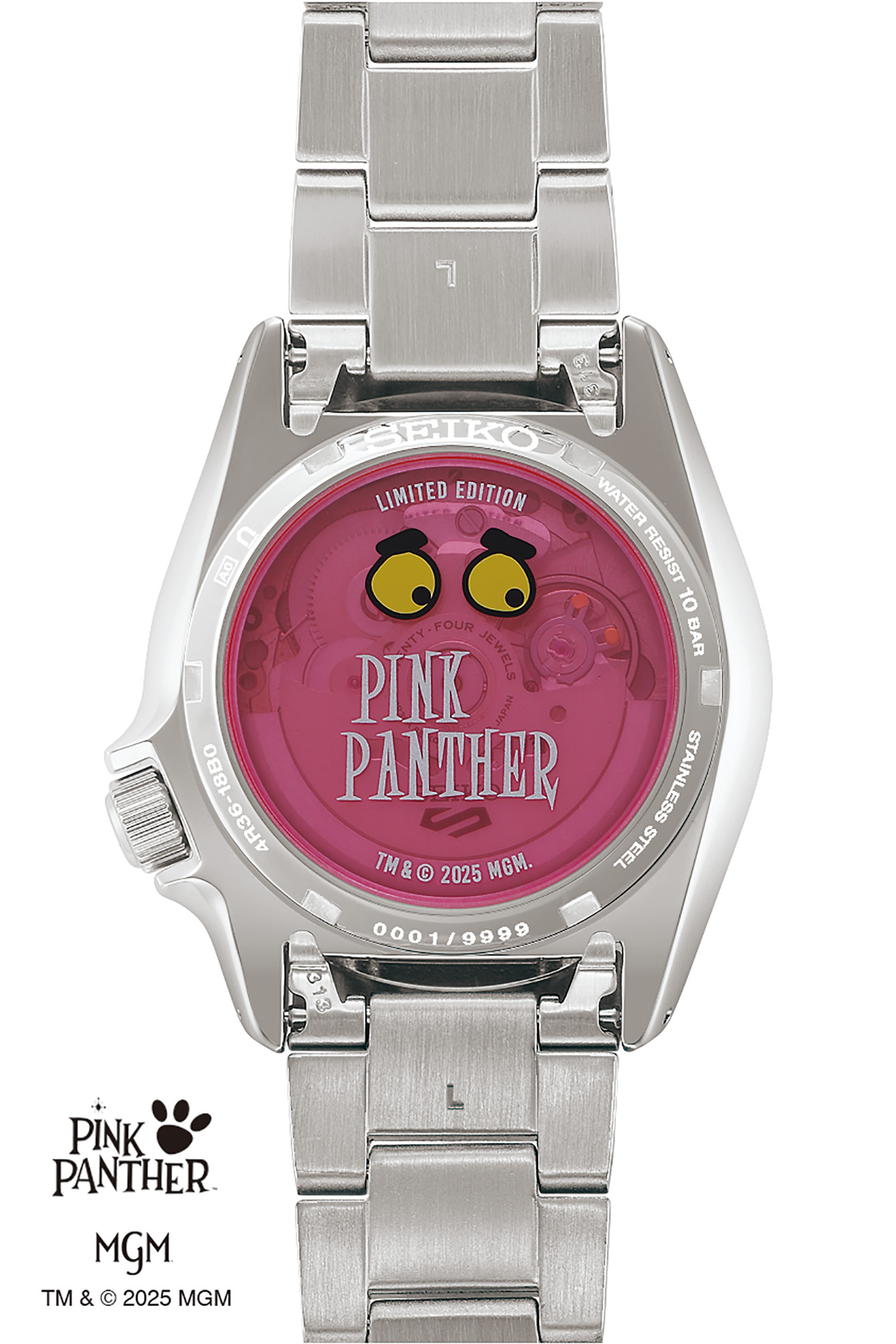 Berdasarkan seri SKX, kreasi ini menangkap kisah Pink Panther di seluruh desainnya, dengan dial, bezel, dan jarum detik yang diberi aksen warna khas, dan dial menampilkan jejak kaki ikonik. Kisah Pink Panther yang dengan nakal mengecat ulang rumah Little Man dengan warna merah muda tercermin di seluruh desain.