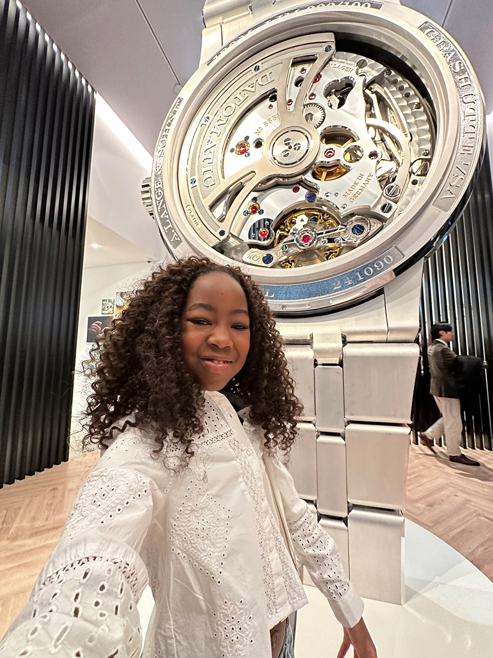 Di depan jam tangan raksasa di booth A Lange & Soehne