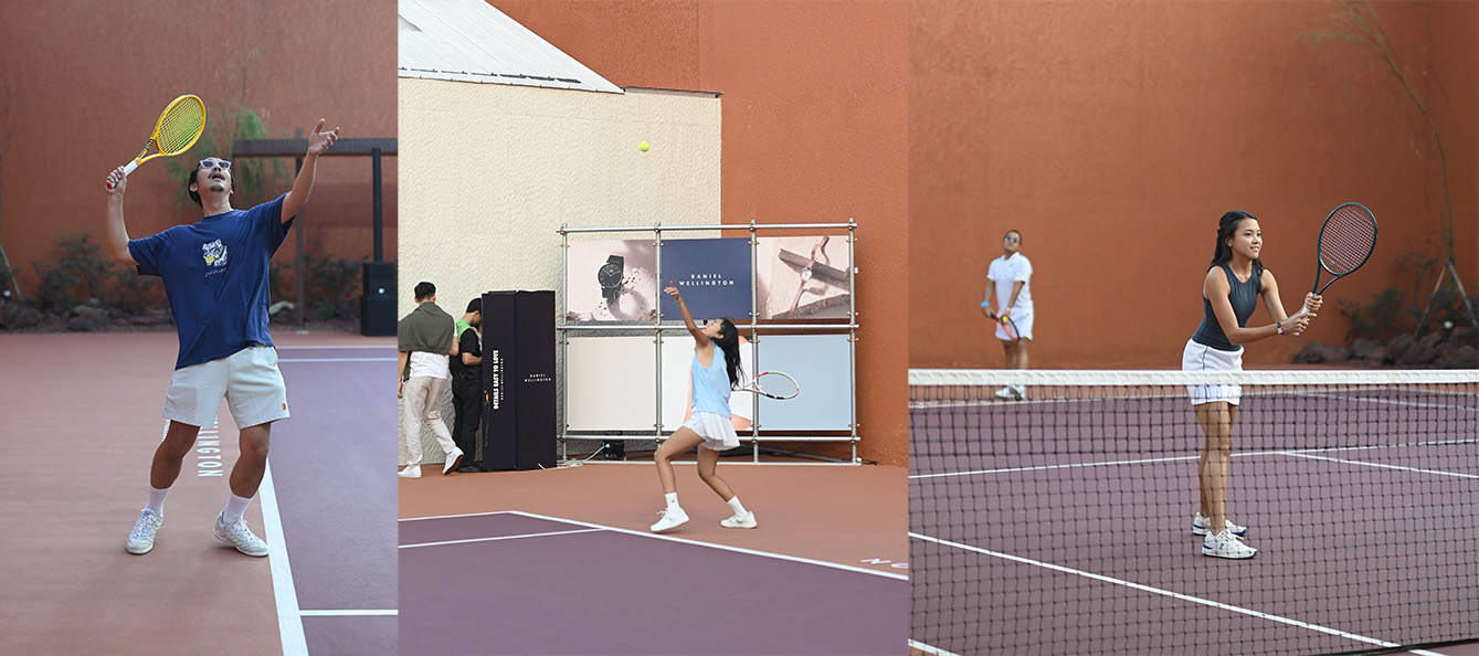 Dalam peluncuran koleksi Autumn/Winter 2024, Daniel Wellington menghadirkan sebuah pengalaman interaktif yang menggabungkan elemen gaya hidup sehat dan modis melalui pertandingan tenis ekshibisi. Acara tersebut menampilkan permainan ganda campuran antara dua pasangan dari latar belakang berbeda, yaitu Ronald M dan Audrey Jessica, pasangan pengusaha sukses dalam bisnis tailor, melawan Andrey Banyu dan Vania Primaldam pasangan content creator yang aktif mempromosikan gaya hidup sehat dan modis. Pertandingan ini mencerminkan semangat sportivitas, kreativitas, dan kesehatan, di mana setiap pasangan mewakili keseimbangan antara gaya hidup aktif dan penampilan penuh gaya.