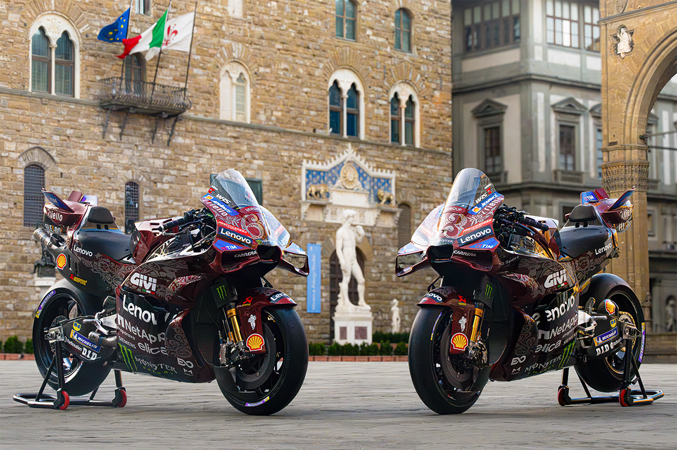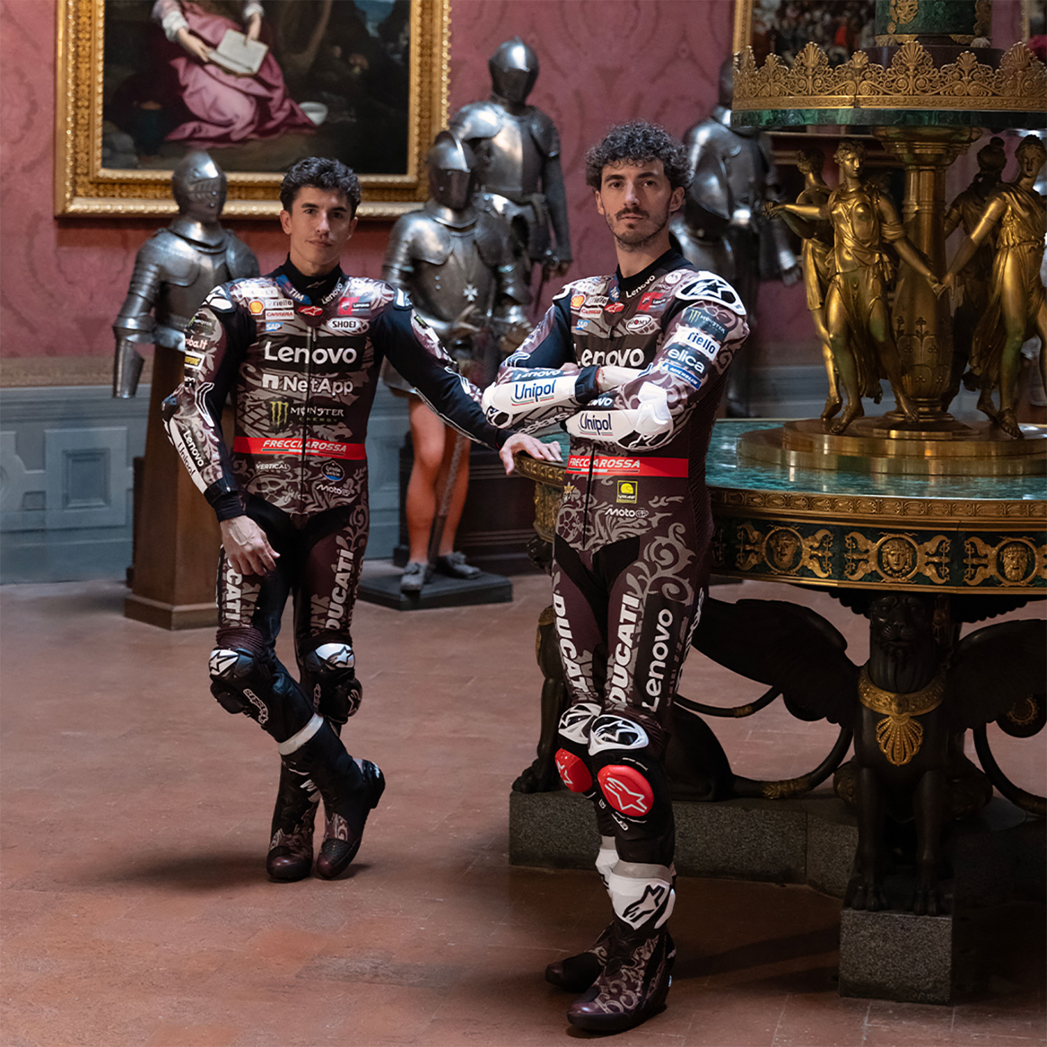 Baju seragam balap bertema Renaissance yang ia kenakan melambangkan penyatuannya dengan filosofi Ducati, di mana kecepatan, keberanian, budaya, dan kecanggihan berpadu.
