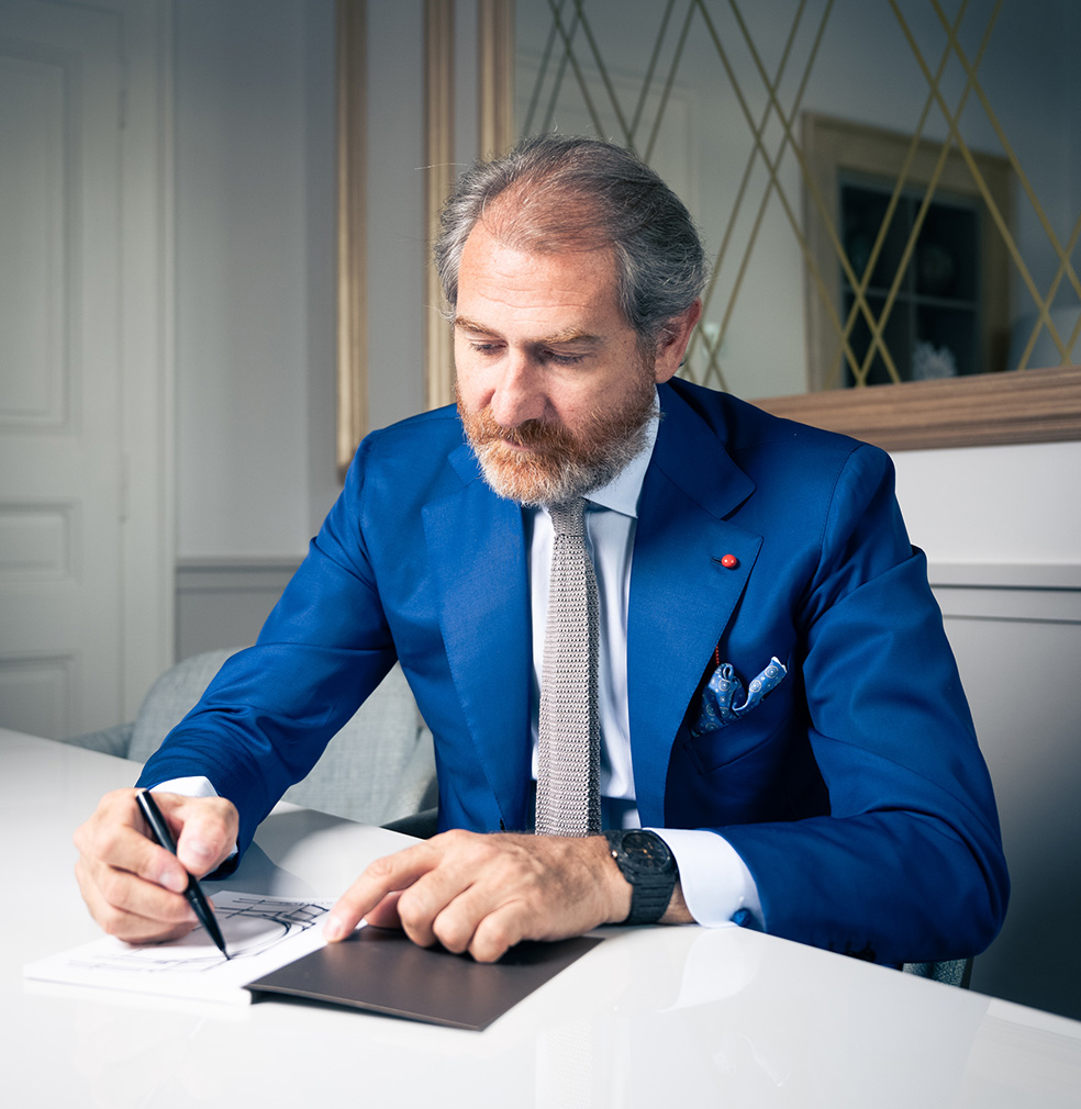 Saat ini menurut saya sangat penting untuk bekerja sama dengan para ahli pembuat jam. Tapi saya harus katakan bahwa seringkali ide-ide tersebut berasal dari sebuah proses atau momen kreatif. Saat ini kami memiliki banyak jam dengan komplikasi rumit, mulai dari Finssimo, Calavera, sampai ke jam dengan tourbillon dan minute repeater. Bagi kami saat ini cukup mudah untuk membayangkan sebuah jam baru berdasarkan mesin jam yang sudah ada.