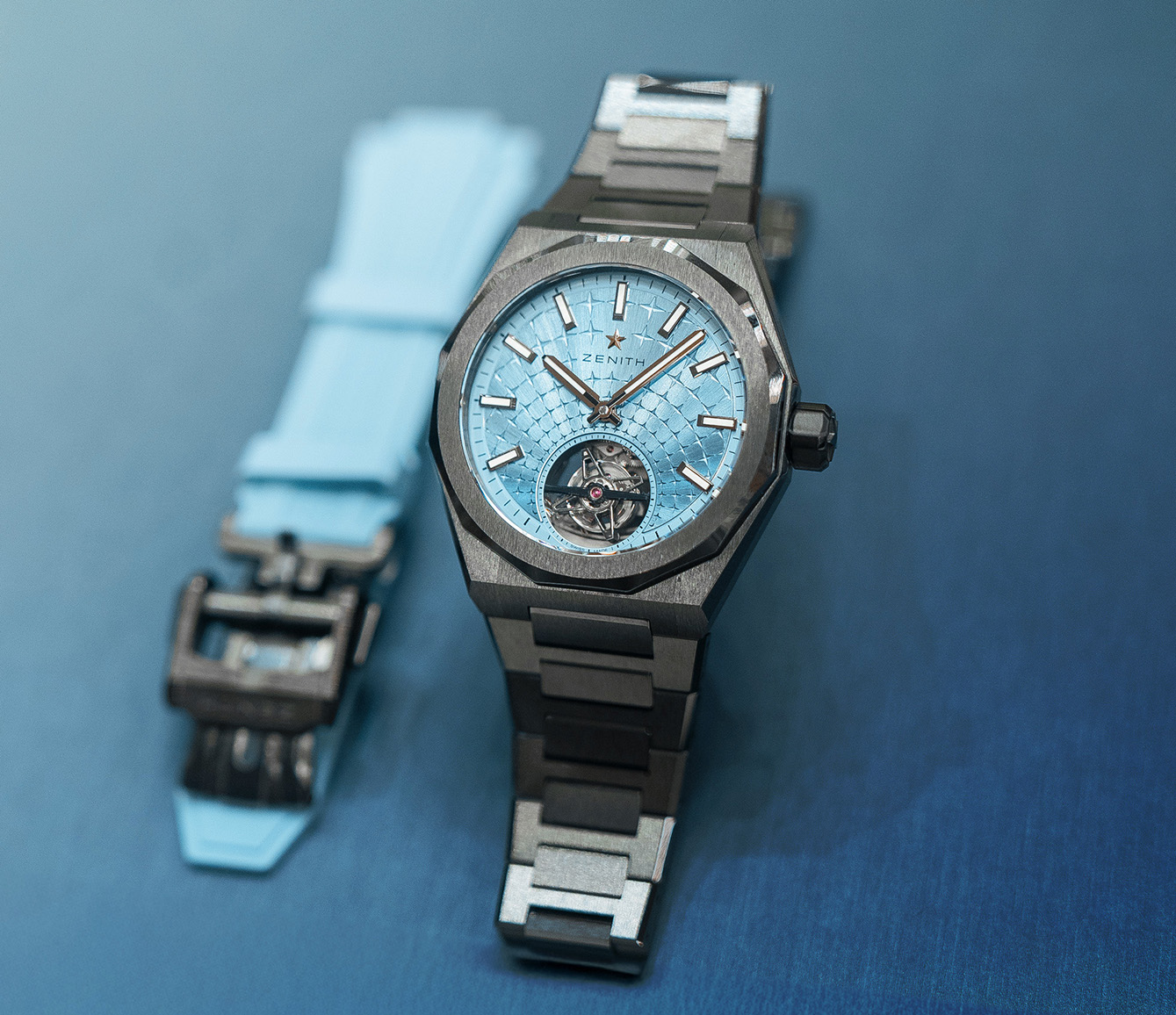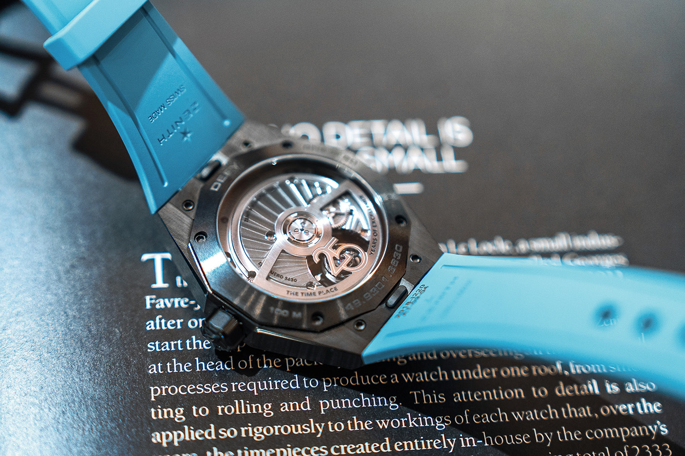 Bersanding dengan gelang keramik hitam yang dapat diganti dengan temali karet hitam, model terbatas 20 unit ini menegaskan komitmen Zenith dalam menghadirkan horologi berteknologi tinggi dengan estetika modern yang berani.