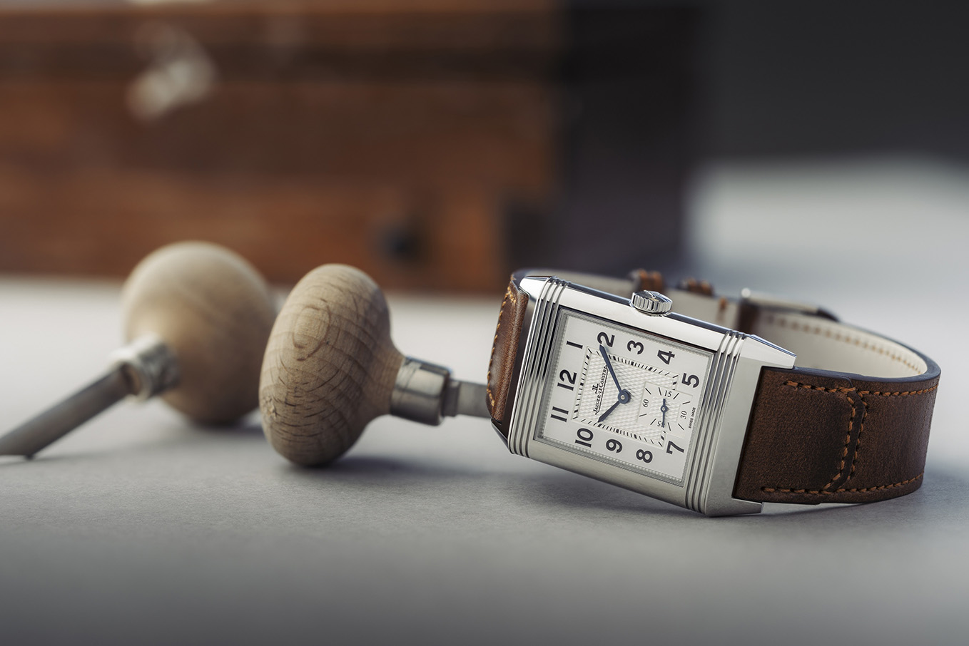 Dengan gerakan casing jam yang dapat dibalik, jam tangan ini menyingkap dial tersembunyi, membuatnya sangat mudah beradaptasi baik untuk siang maupun malam.