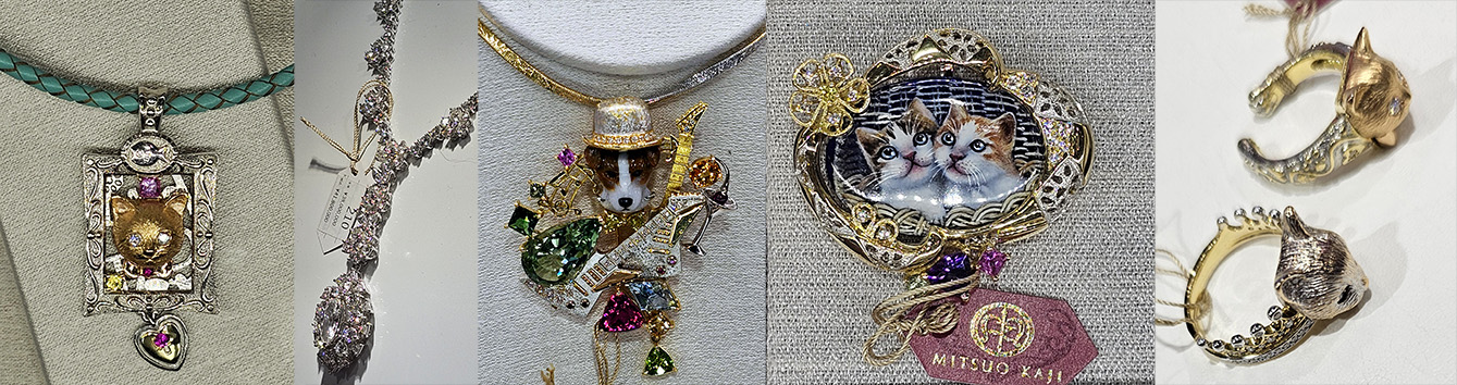 Salah satu desain perhiasan yang layak menjadi koleksi (Collector’s Item) yang kami temukan pada hari pertama 国際宝飾展/Pameran Perhiasan Internasional di Jepang (International Jewellery Shows, Tokyo) adalah perhiasan menakjubkan dari Kaji Jewellery Art karya seniman perhiasan, Mitsuo Kaji.