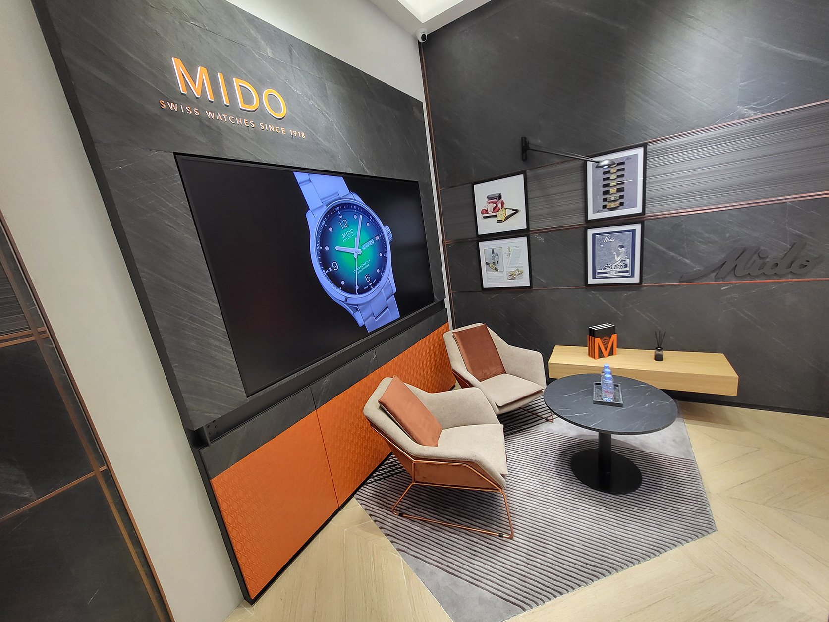 Butik pertama ini juga menjadi sarana untuk layanan purna-jual seluruh produk jam tangan resmi Mido. Dilengkapi juga dengan lounge area yang nyaman untuk memanjakan pelanggan untuk semakin nyaman selama berada di dalam butik.