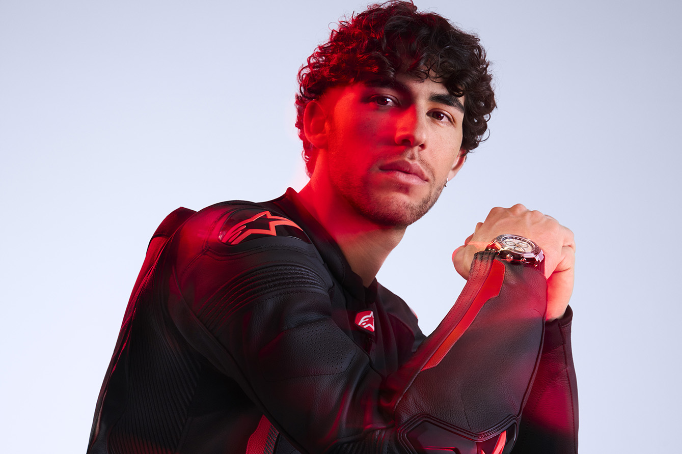 Jam tangan ini dibuat dengan detail dan keahlian yang sama antara pembuat jam tangan, mekanik sepeda motor, dan pengendaranya. Desain dial hadir dengan detail merah terang untuk memberikan kesan kecepatan, dan memamerkan logo MotoGP™ yang terukir di bagian belakang casing dan chronograph yang terinspirasi dari speedometer.