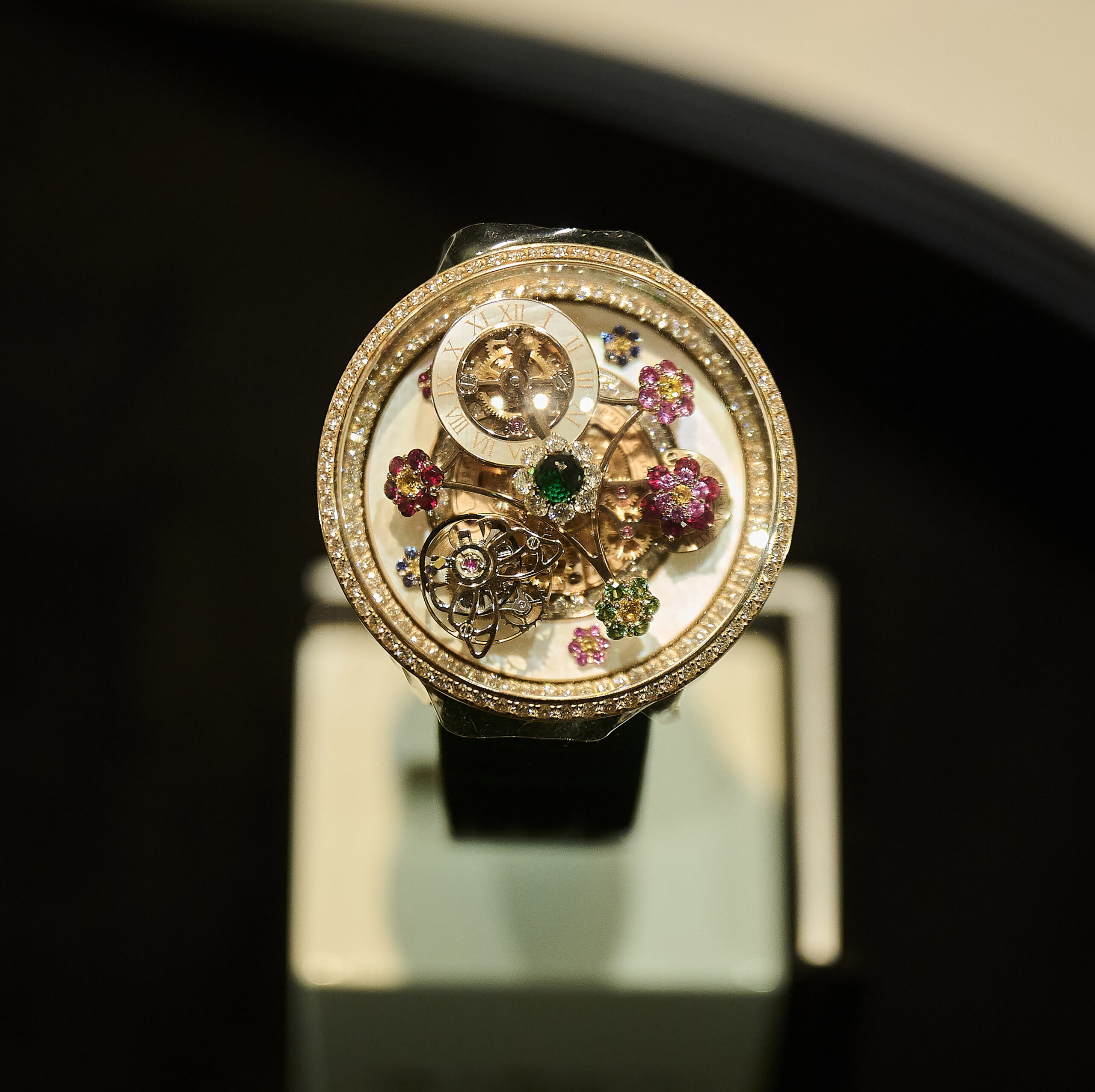 Pameran ini juga menampilkan pembuat jam tangan Swiss yang ikonik, Jacob & Co., yang terkenal karena koleksinya yang dirancang untuk para miliarder dan selebritas.