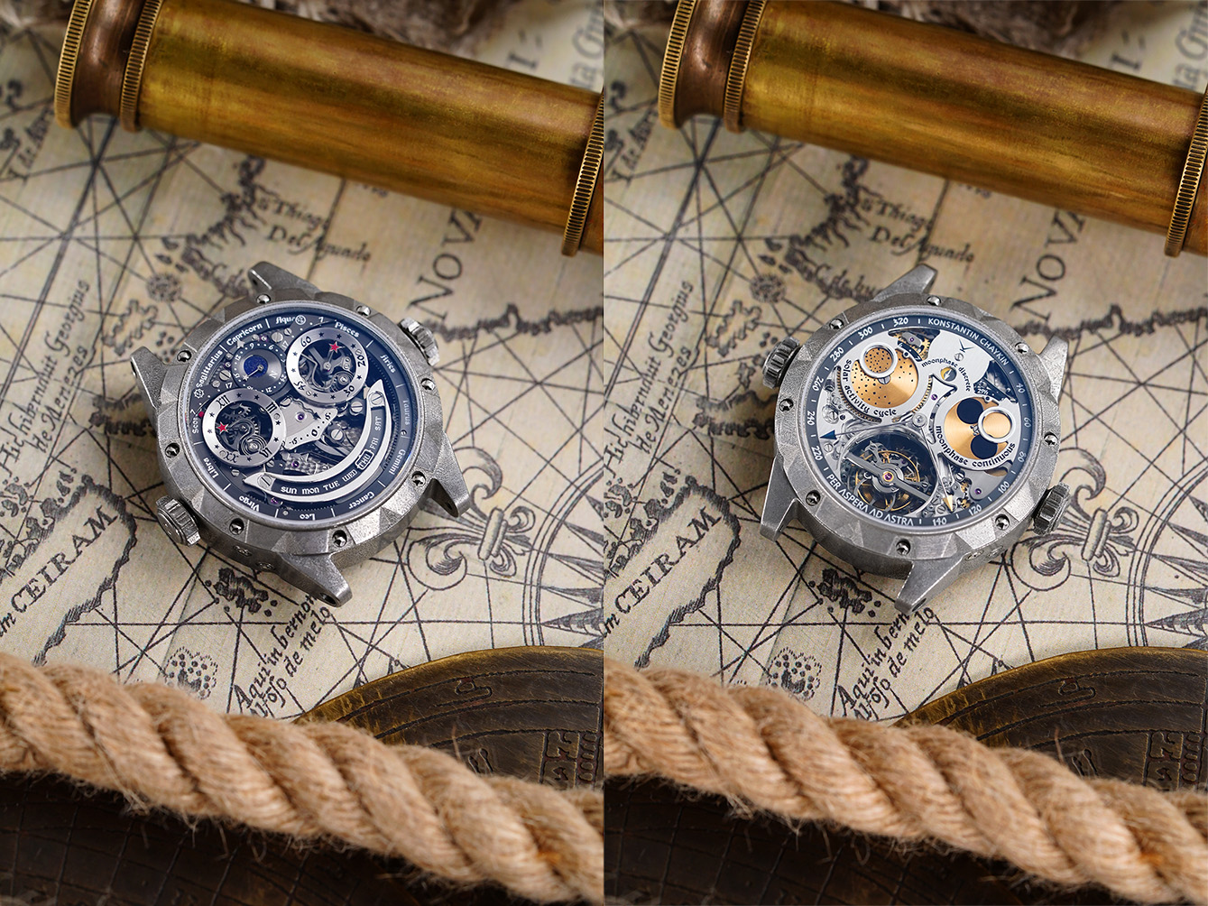 “Tahun ini menandai peringatan 20 tahun berdirinya manufaktur saya dan penting bagi saya untuk menyimpulkan semacam hasil dengan menggabungkan tiga dorongan utama di balik kreativitas saya: mekanika jam tangan yang sangat rumit, desain antropomorfik, dan tema eksplorasi ruang angkasa,” ungkapnya. Hasilnya adalah jam tangan paling rumit yang pernah dibuat oleh Konstantin Chaykin dan salah satu jam tangan paling rumit di dunia, dengan 11 dari 17 fungsi Stargazer bersifat astronomis. Sang master menggunakan kedua sisi jam tangan, menciptakan dua dial antropomorfik untuk mendistribusikan indikatornya secara harmonis.