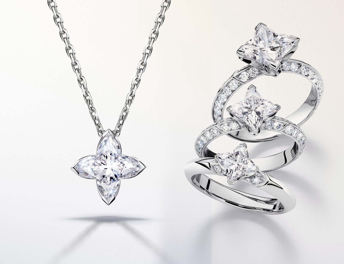 Inti pusaran dari koleksi ini adalah potongan LV Monogram Star, sebuah desain berani dengan 53 faset yang runcing, terinspirasi langsung dari bunga monogram bintang ciptaan Georges Vuitton pada tahun 1896. Bentuk grafis yang khas ini menghasilkan kilau berbeda dari potongan konvensional, menciptakan bahasa visual yang segera dikenali sebagai milik Louis Vuitton. Dengan cara ini, berlian bukan hanya perhiasan, melainkan simbol identitas yang menyatukan tradisi dan inovasi di dalam satu karya secara kukuh.