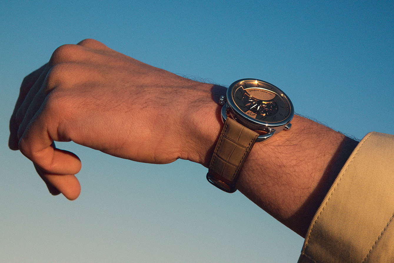 Di balik permainan halus ini, tersembunyi komplikasi mekanis yang rumit, tetapi disampaikan secara piawai, nyaris tanpa suara. Versi terbaru Arceau tahun ini hadir dalam case berdiameter 42 mm dengan pilihan warna yang semakin memperdalam nuansa kontemplatif: biru sunburst, cokelat brun désert, dan merah rouge sellier.