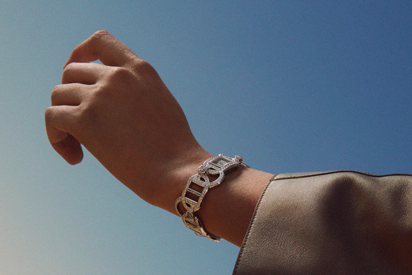 Dimensi case-nya yang ringkas menjaga proporsi tetap harmonis, sementara tali kulit dan pin khusus memungkinkan jam ini dikenakan sebagai perhiasan yang berpindah fungsi. Hermès tidak menjadikan jam ini sebagai pernyataan besar, melainkan sebagai penanda halus tentang bagaimana waktu bisa diselipkan dalam bentuk paling tak terduga.