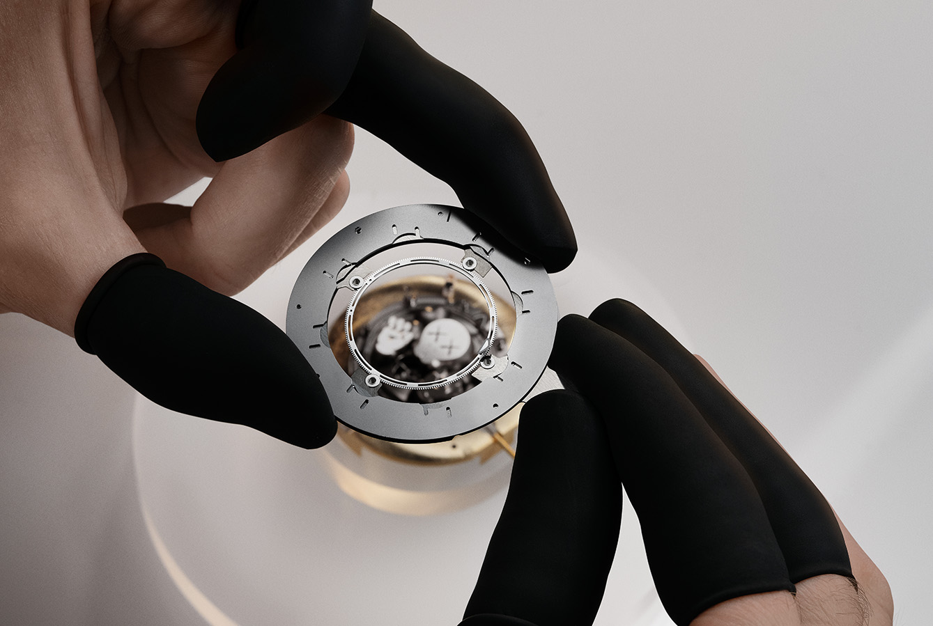 Tidak hanya sebuah objek seni, jam tangan ini juga menampilkan kecanggihan teknis melalui Calibre 2979. Mesin manual ini menggunakan tourbillon untuk meminimalkan efek gravitasi terhadap presisi, sementara sistem roda gigi periferal memungkinkan pembacaan waktu yang tetap efisien tanpa mengorbankan estetika. Dalam gelap, luminescence biru dari jarum titanium dan penanda waktu memberikan pengalaman visual yang menawan, menambah dimensi hidup pada karya ini.