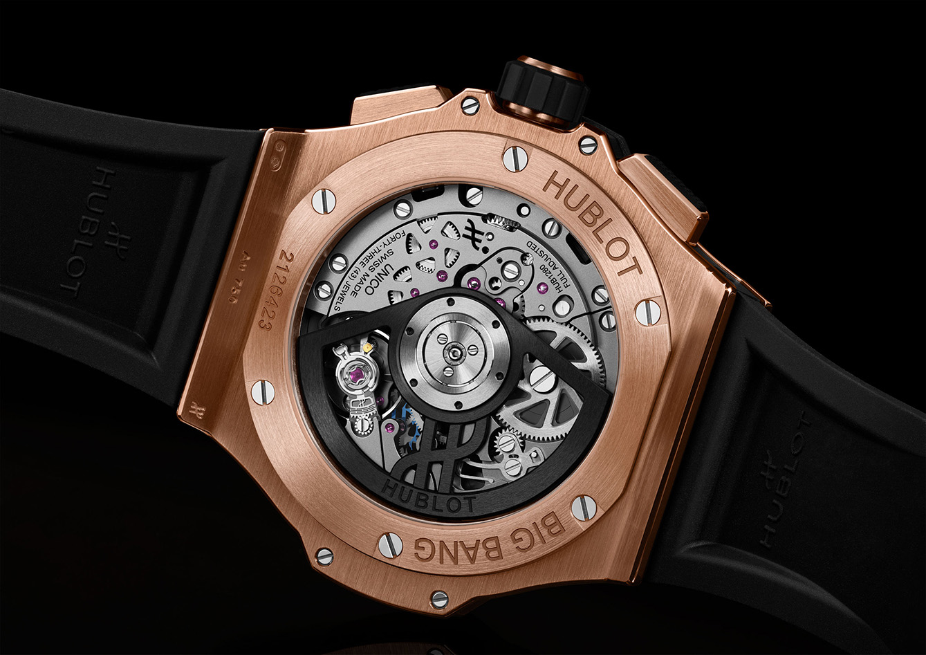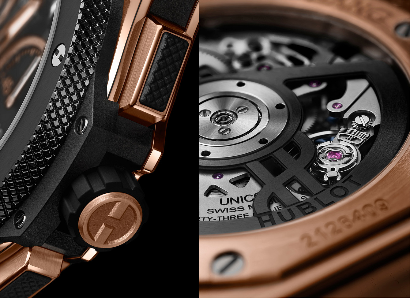 Di balik dial terbuka yang memperlihatkan anatomi mekanisnya, terdapat Unico, mesin penggerak in-house pertama Hublot yang sepenuhnya dirancang dan diproduksi sendiri sejak 2010. Sebuah flyback chronograph terintegrasi dengan presisi hingga 1/8 detik, memungkinkan reset dan mulai ulang seketika hanya dengan satu tekanan.