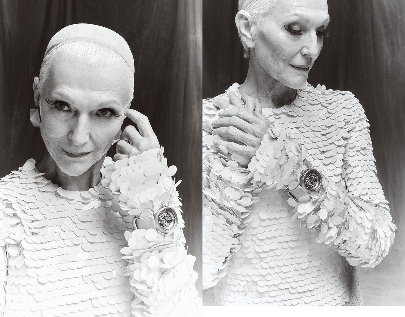 Model dan ikon terkenal di dunia, Maye Musk tampil dalam editorial yang memukau di mana ia terlihat mengenakan jam tangan Vanguart yang sangat indah. Dikenal karena keanggunannya, kecantikannya yang tak lekang oleh waktu, dan kariernya yang cemerlang, Maye Musk adalah simbol keanggunan dan kecanggihan—kualitas yang sangat sesuai dengan filosofi Vanguart.