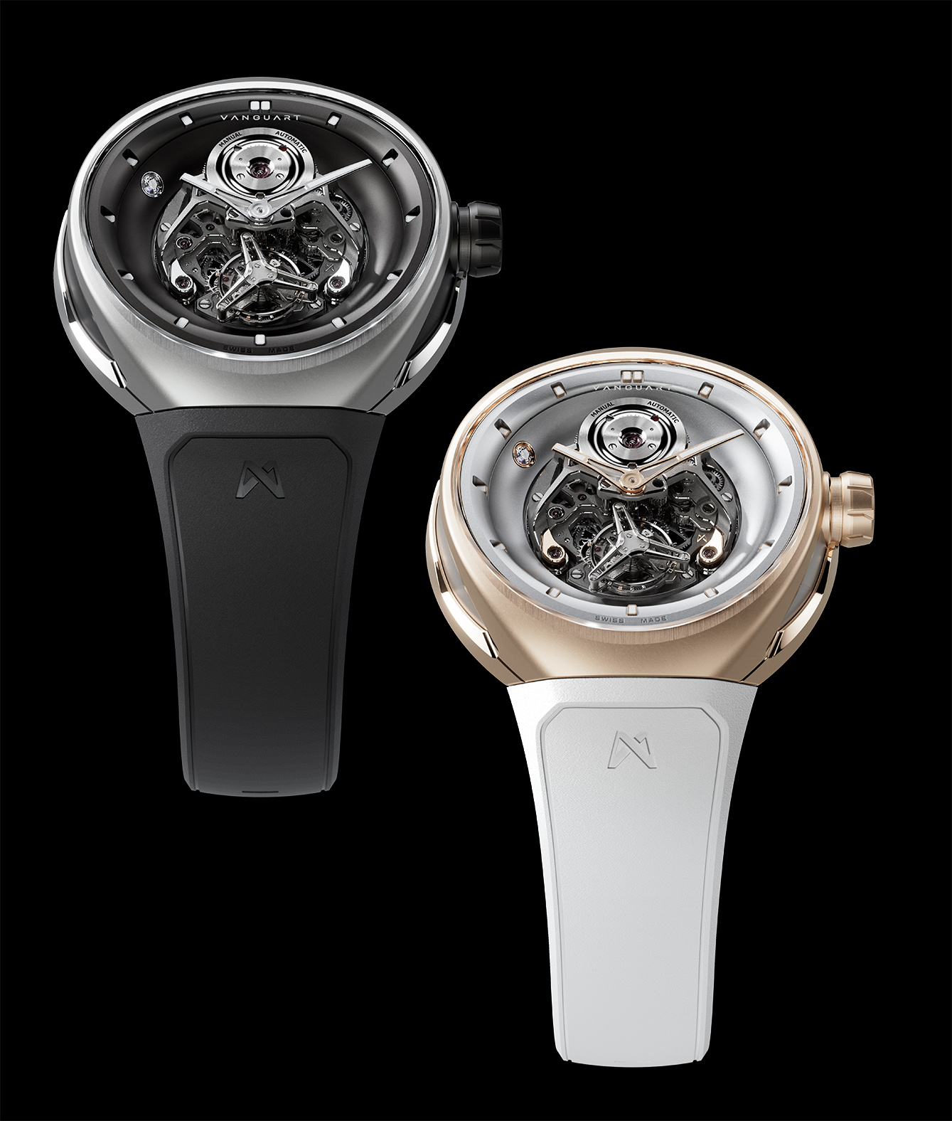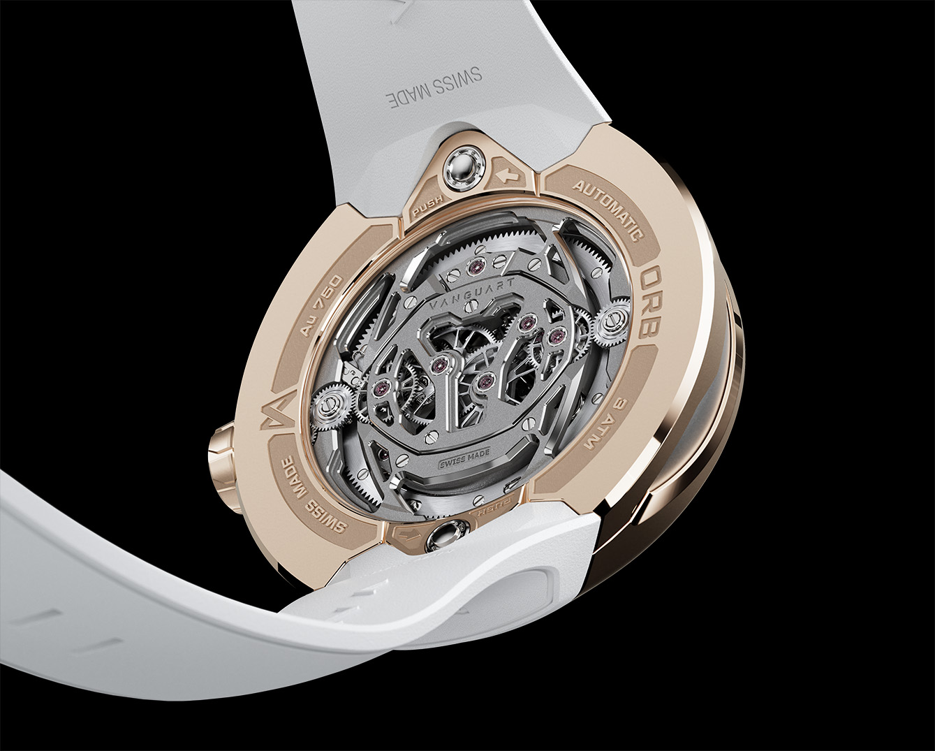Vanguart Orb adalah jam tangan tourbillon yang memadukan keanggunan dengan inovasi futuristik. Dilengkapi dengan mesin jam flying tourbillon unik yang dibuat dengan tangan, jam berdiameter 41mm ini memungkinkan pengguna untuk beralih antara mode pemutaran otomatis dan manual. Keunikan dari massa pemutar orbital dengan berlian dekoratif yang dipasang pada cincin titanium, dan penyeimbang dalam emas dibingkai dalam casing dengan dua pilihan bahan, yaitu titanium atau rose gold, dengan finishing microblasted, bevel poles buatan tangan dan finishing satin.