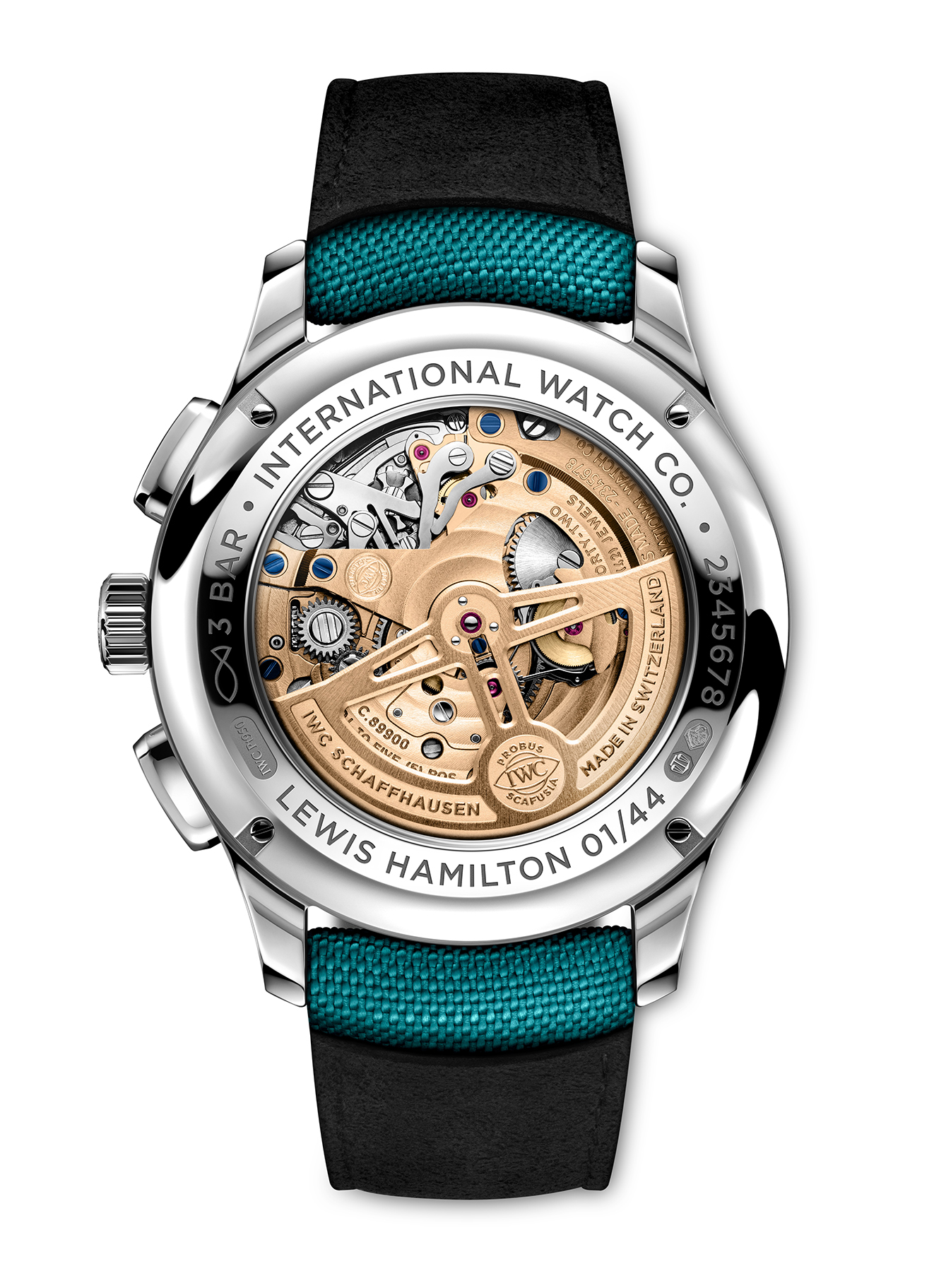 Selama lebih dari 150 tahun sejarahnya, IWC memiliki reputasi menciptakan jam tangan instrumen profesional dan kerumitan fungsional, terutama chronograph dan kalender, yang orisinal, tangguh, dan mudah digunakan. Untuk model ini, mesin penggerak calibre 89900 buatan IWC menenagai flying minute tourbillon, fungsi chronograph, dan display tanggal retrograde. Jam tangan ini dibuat terbatas hanya 44 buah, seperti nomor balap Hamilton sejak mengawali karier cemerlangnya.