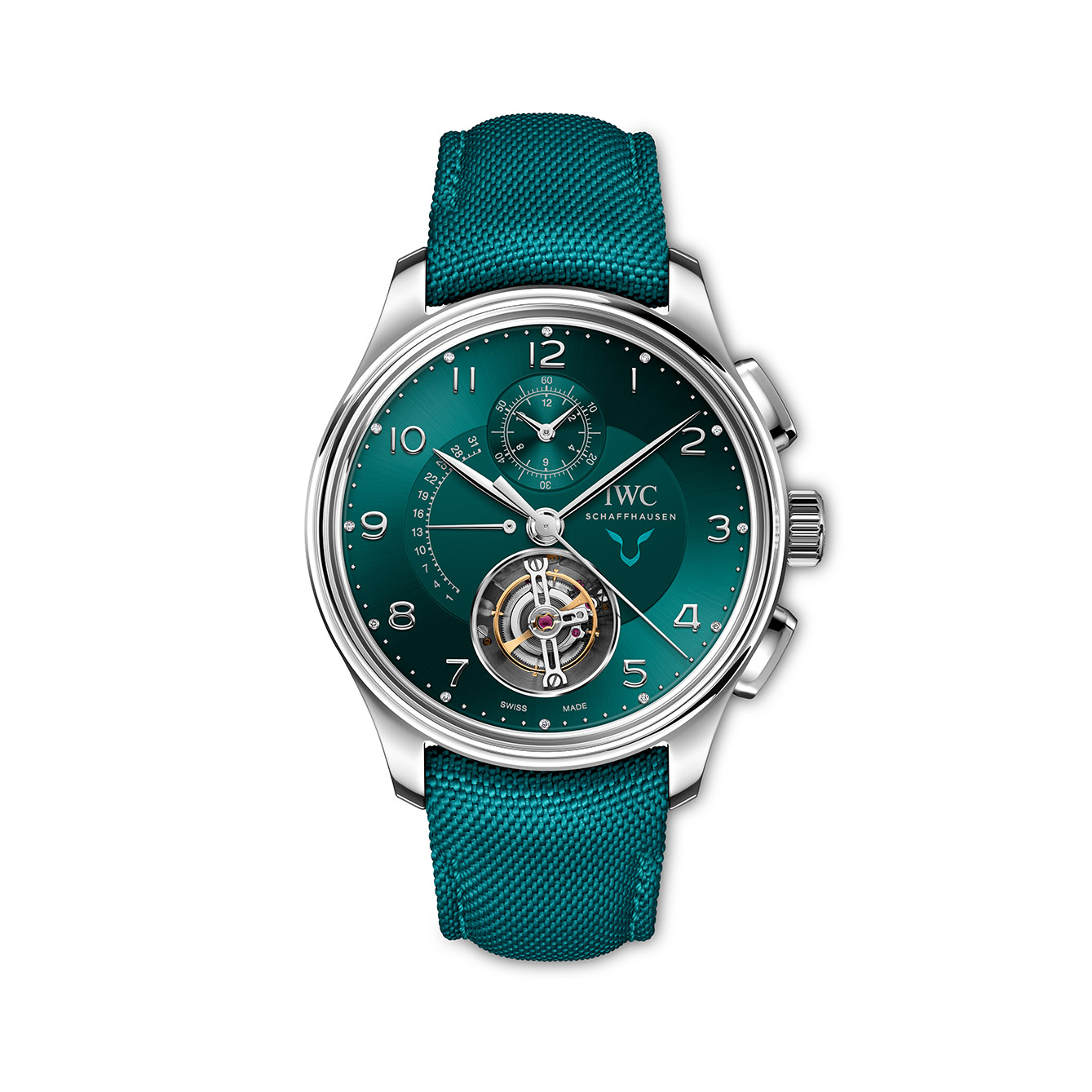 IWC juga mempunyai spesialisasi dalam kasing jam tangan yang dibuat dari bahan-bahan canggih, seperti keramik berwarna, Ceratanium®, dan titanium aluminide. Untuk Portugieser Tourbillon Rétrograde Chronograph Lewis Hamilton (Ref. IW394008), kasingnya berdiameter 43,5 mm yang terbuat dari platinum, logam terlangka dan paling berharga. Kilau platinum sempurna melengkapi dial berwarna teal pekat yang dihiasi 12 berlian, dengan finishing keseluruhan yang menjadikan tampilannya bagaikan karya seni rupa.