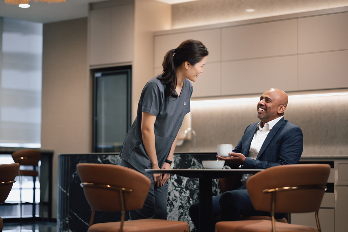 Di DA MedSuites, para tamu dapat memanfaatkan pemeriksaan kesehatan komprehensif dengan laporan mendalam dan rinci, konsultasi one-on-one dengan para profesional perawatan kesehatan, dan layanan concierge kesehatan tersendiri.