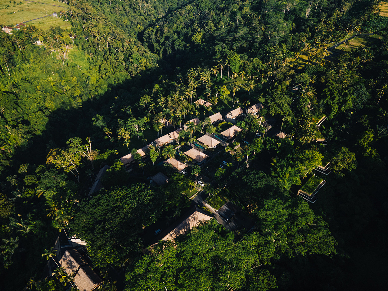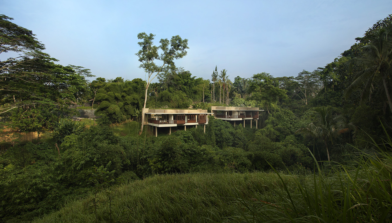 Atau Forest Edge Villas yang berada di tepi lembah Sungai Ayung, memfokuskan pada pemandangan sejuknya hutan tropis yang lebat dan lembah yang memukau.