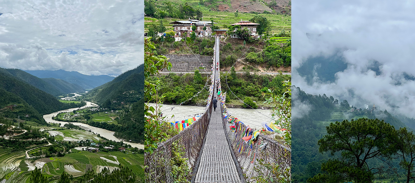 Di sana, kami mengikuti tur yang mencakup beberapa atraksi utama, termasuk patung Buddha Dordenma yang masif, keindahan pemandangan Tashichho Dzong, dan Simply Bhutan (merasakan minum butter tea khas lokal, menari tarian tradisional, dan mencoba olahraga nasional memanah). Setelah meninggalkan Thimphu, perjalanan dilanjutkan di jalan berkelok-kelok naik ke Dochula Pass (3.100 mdpl), menawarkan pemandangan ke 108 Chorten (monumen peringatan pejuang perang), dan pada hari cerah, pemandangan luas dari Pegunungan Himalaya dapat terlihat dari sini.