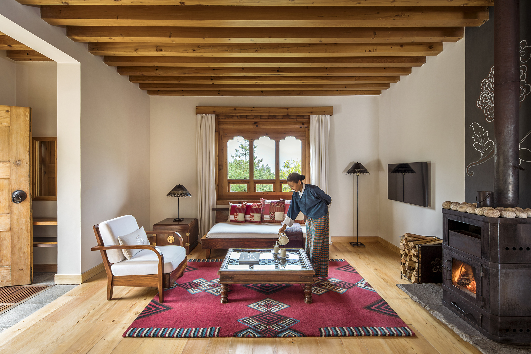 Tamu yang menginap di properti mewah yang berada di bukit yang menghadap ke kota Paro dan hanya berjarak 10 menit berkendara dari bandara internasional Bhutan ini, akan mendapatkan perawatan khas di COMO Shambhala Retreat milik hotel, rumah bagi dua pemandian dan kolam renang indoor besar yang menghadap ke pegunungan di seberang lembah. Kemudian para tamu akan diajak ke COMO Uma Punakha selama tiga malam berikutnya.